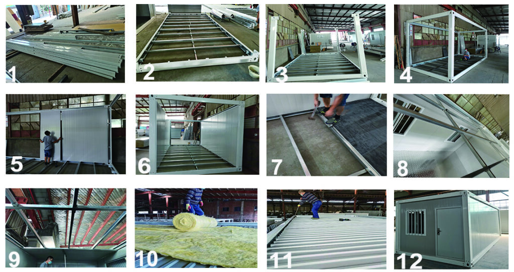 The assembly is simple,  most of the job are bolting, you just need to assemble the parts with bolting follow our instruction.  Usually 4 workers and assemble 1 detachable container store in 4 hours