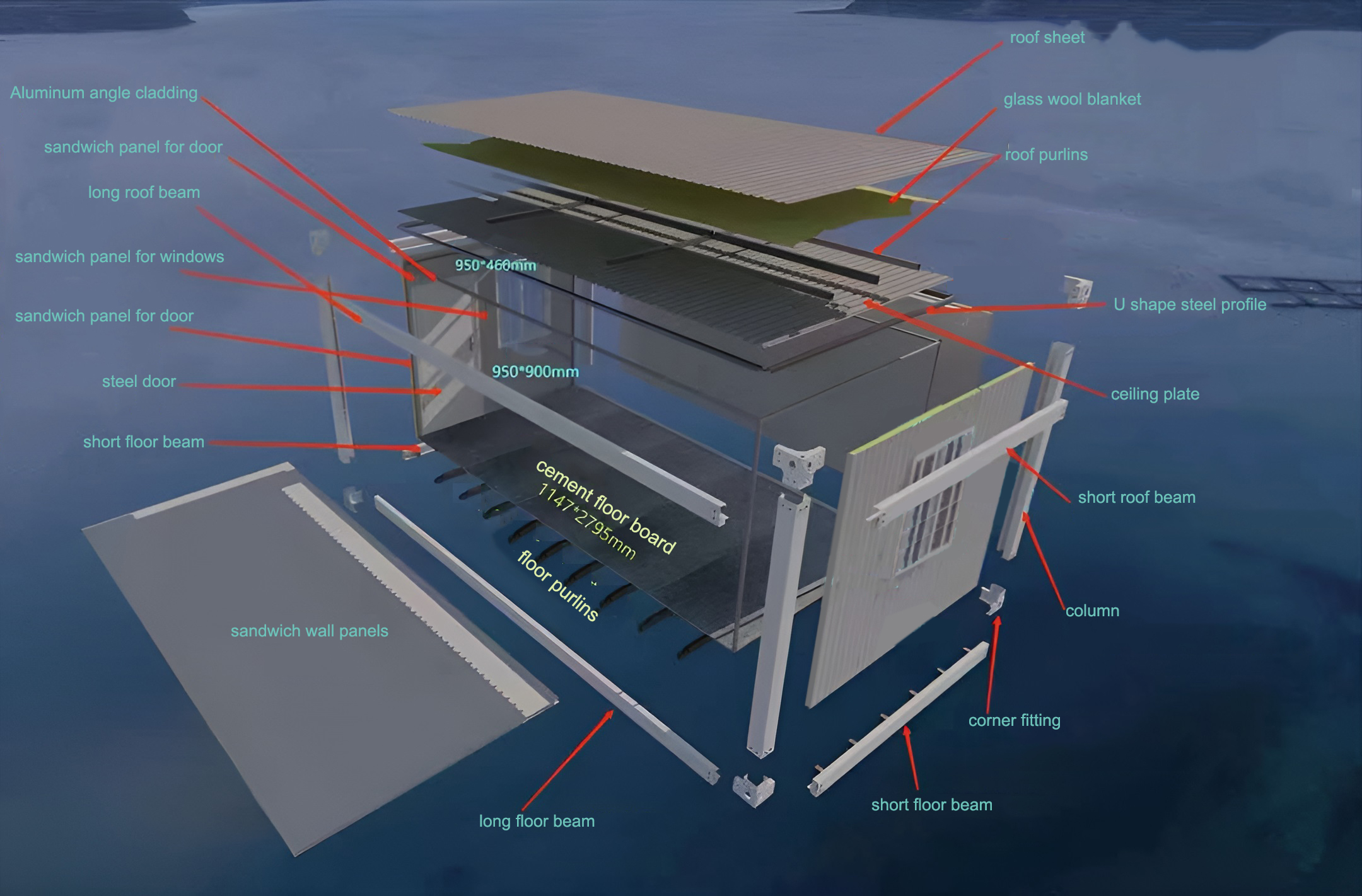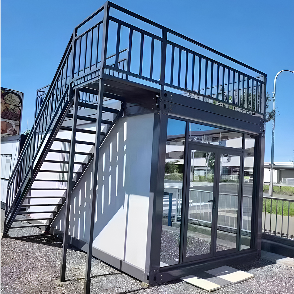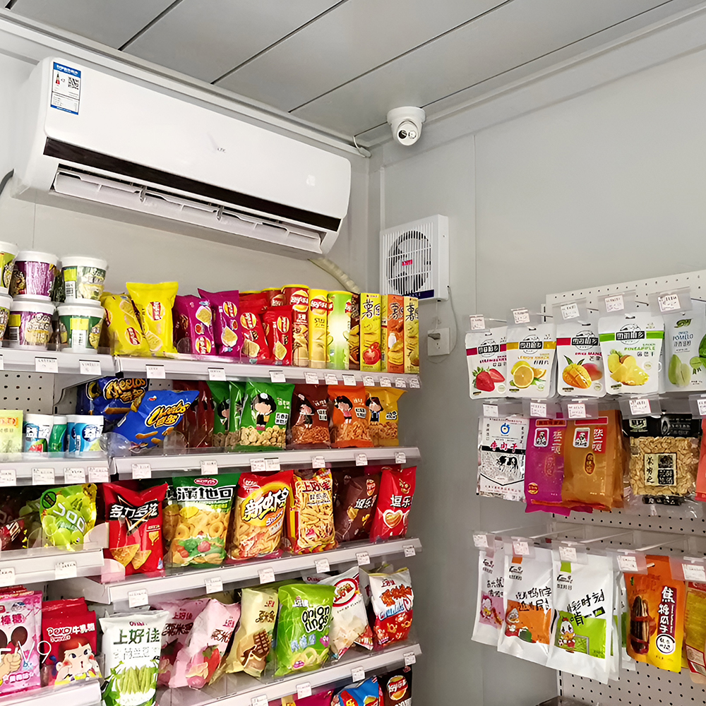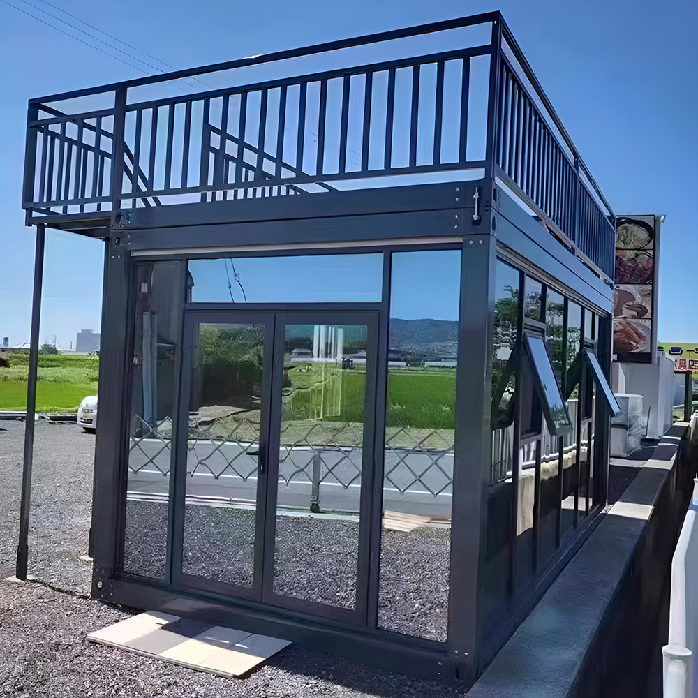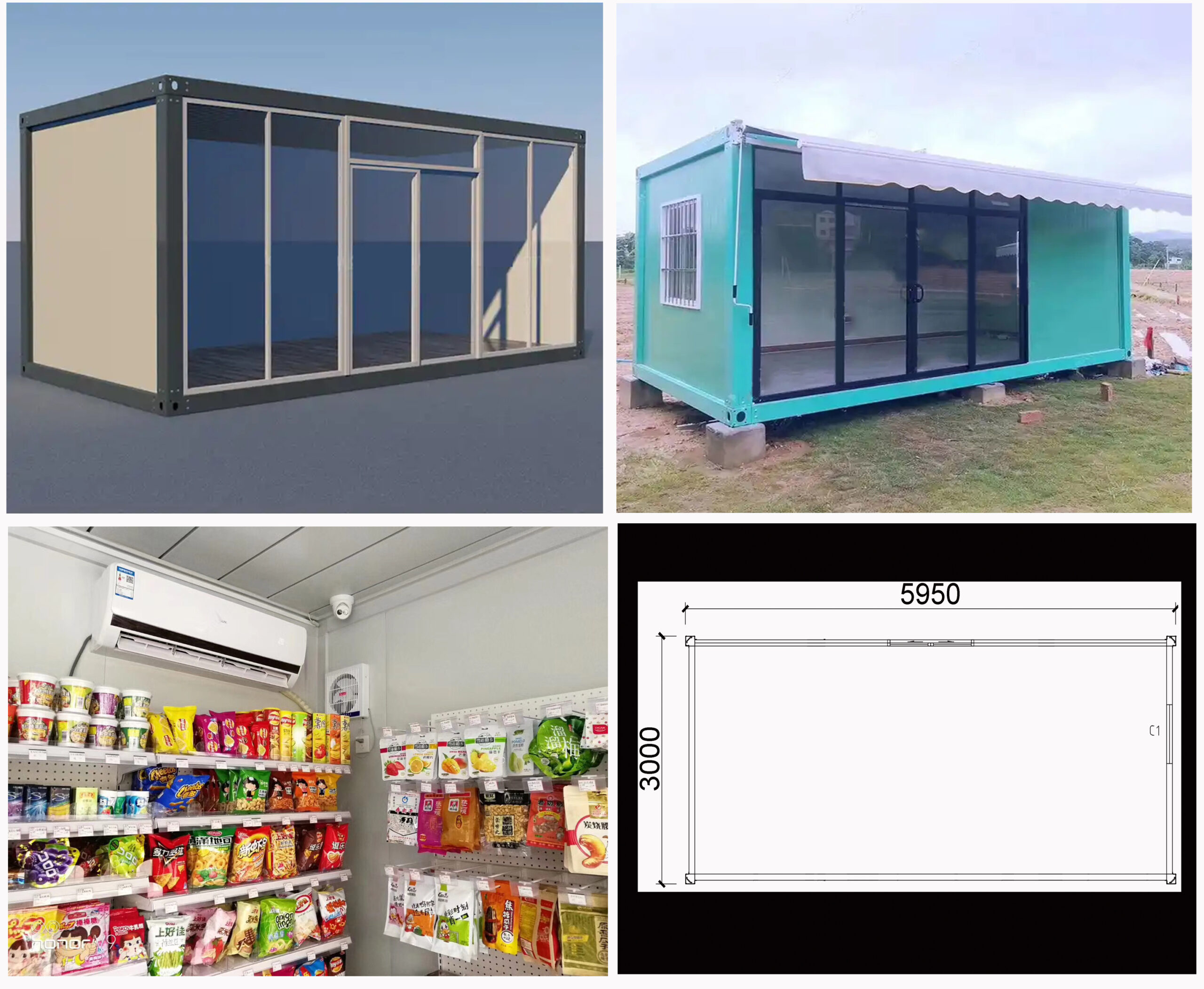 The detachable container store is 100% modular prefab store. All the parts can be connected with bolts easy to become a container store. The main frame is made from 2.3mm thick hot dip galvanizing steel profile, and the wall is  0.3mm thick steel sheets + 50mm thick EPS/Rock Wool/PU  sandwich panel. So it is a store with strong steel structure and good insulated function. The full knock down design make the detachable container store to be no limitation for transportation and no need lift equipment for installation, and also save a lot shipping cost.